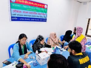 To ensure better health security and awareness among the workers of Jinnat Knitwears Ltd., Mawna Diabetic Association organized a Free Diabetes Screening, Health Counseling, and Free Dental Check-up Camp.